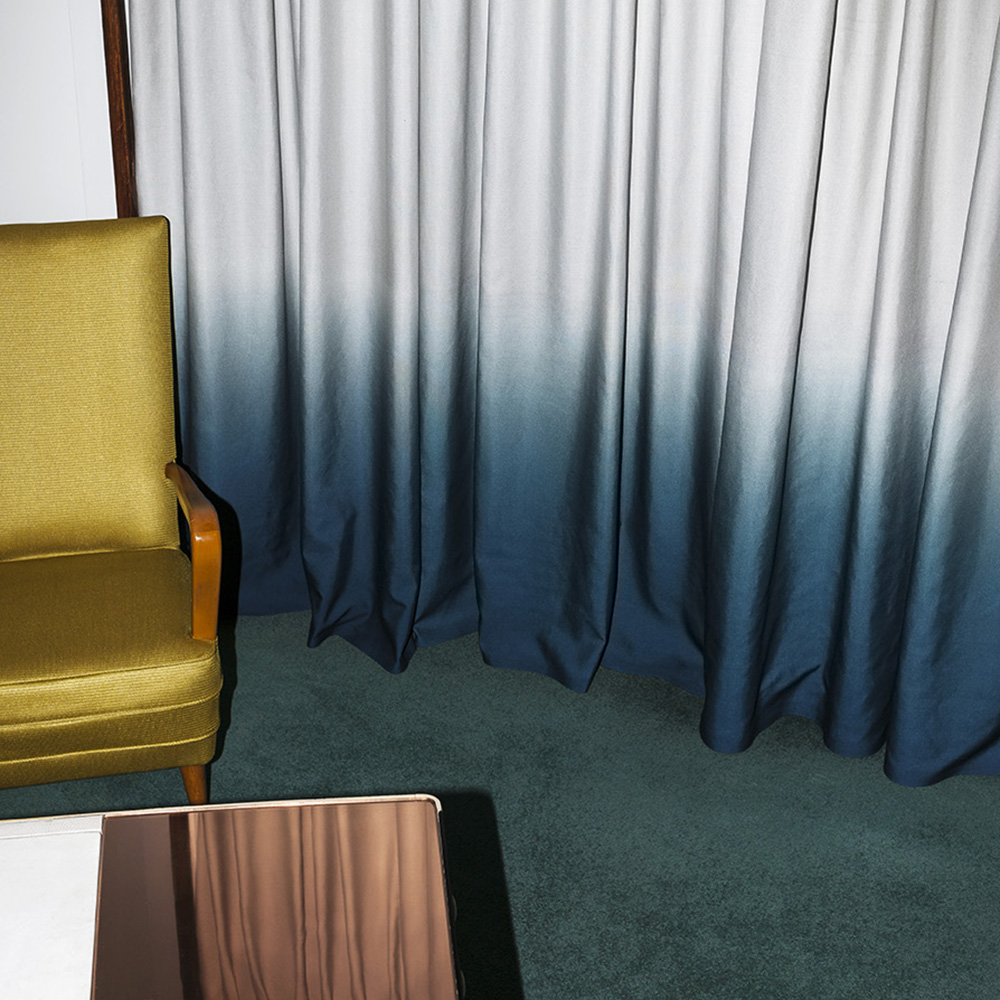 Tessuto Dedar. La balza degradé Horizon è stampata sulla tela Oxford in Trevira CS. La sfumatura della balza è regolare, parallela alla cimossa. Sei i colori disponibili: sole, rosso corallo, notte, stone, oltre mare e deep blue.